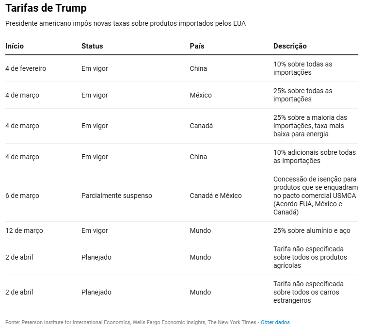 O Brasil é o segundo maior fornecedor de aço para os EUA, atrás somente do Canadá, cuja tarifa de importação prometida por Trump — e adiada nesta terça-feira, 11 — é de 50%.