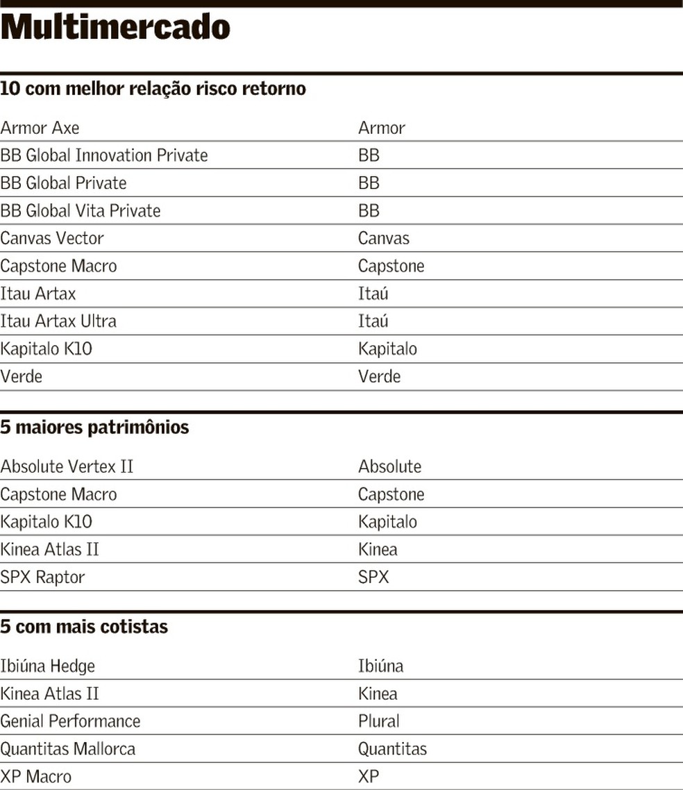 É nessa característica de defesa desses fundos que se concentra a aposta de muitos gestores de que os multimercados deverão voltar a atrair investidores. Em 2026, o provável início de corte dos juros vai reduzir o ganho na renda fixa, independentemente de a Selic terminar o ano em dois dígitos. Somado aos cortes, 2026 terá eleições, quando a volatilidade dos mercados tende a aumentar. Assim, investidores devem começar a aceitar um pouco mais de risco como forma de proteção e um retorno maior, uma vez que a classe desses fundos vai muito bem em cenários mais voláteis, avalia Moreno.