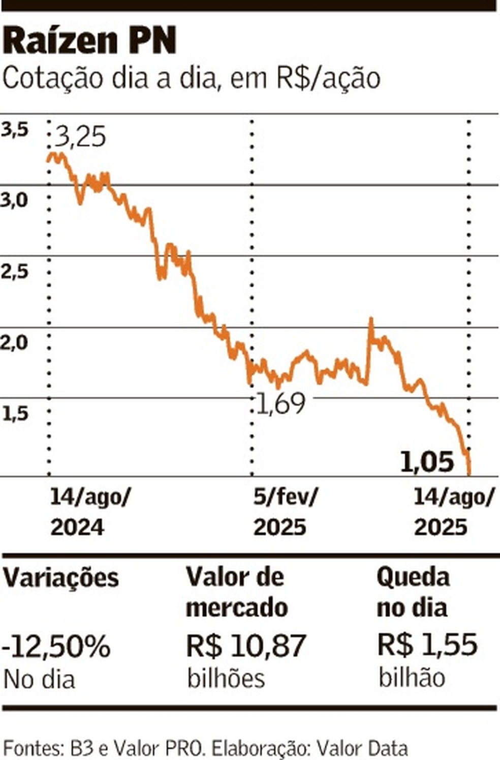 A estratégia mira uma redução da dívida líquida, que teve um salto de 55,8% em 12 meses e alcançou R$ 49,2 bilhões em junho, o que fez com que a alavancagem dobrasse em um ano, encerrando o trimestre em 4,5 vezes o resultado antes de juros, impostos, depreciação e amortização (Ebitda). A RaízenCotação de Raízen encerrou o primeiro trimestre da safra 2025/26 com prejuízo líquido de R$ 1,8 bilhão e Ebitda ajustado de R$ 1,89 bilhão, queda de 23,4%.