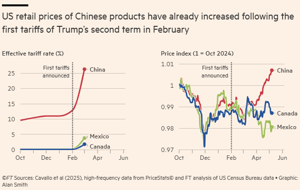 Produtos chineses vendidos nos EUA já registram aumentos significativos de preços no varejo, segundo análise de dados de alta frequência da PriceStats por Alberto Cavallo, da Harvard Business School.