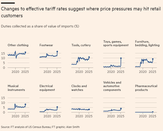 As tarifas EUA-China “ainda são muito mais altas do que eram há alguns meses, assim como as tarifas de muitos outros países”, diz Karen Dynan, economista do Peterson Institute e ex-economista-chefe do Tesouro dos EUA sob Obama. “Portanto, ainda há tarifas pressionando consideravelmente consumidores e empresas.”