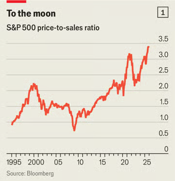 Você poderia pensar que short-sellers como o sr. Chanos, que apostam na queda dos preços em vez da alta, estão ansiosos por uma bonança. Com muitos mercados de ações perto de máximas históricas, certamente não faltam alvos suculentos. As formas convencionais de avaliar ações (que comparam preços a fundamentos como lucros, vendas ou ativos subjacentes) mostram que as ações americanas estão quase tão caras quanto durante a bolha pontocom, ou ainda mais (veja o gráfico 1). E os investidores, afinal, estão tão confiantes no potencial de lucro ainda não comprovado da IA que estão apoiando empresas para lançar centros de dados ao espaço. Com expectativas tão elevadas, apostar na decepção raramente pareceu tão tentador.