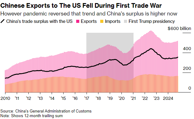 Se Trump voltar a impor tarifas, a China pode novamente responder da mesma forma, atingindo exportações americanas de máquinas ou produtos agrícolas como soja, milho e carne suína. Empresas já estão correndo para enviar o máximo de mercadorias possível para os EUA antes da posse presidencial em 20 de janeiro.
